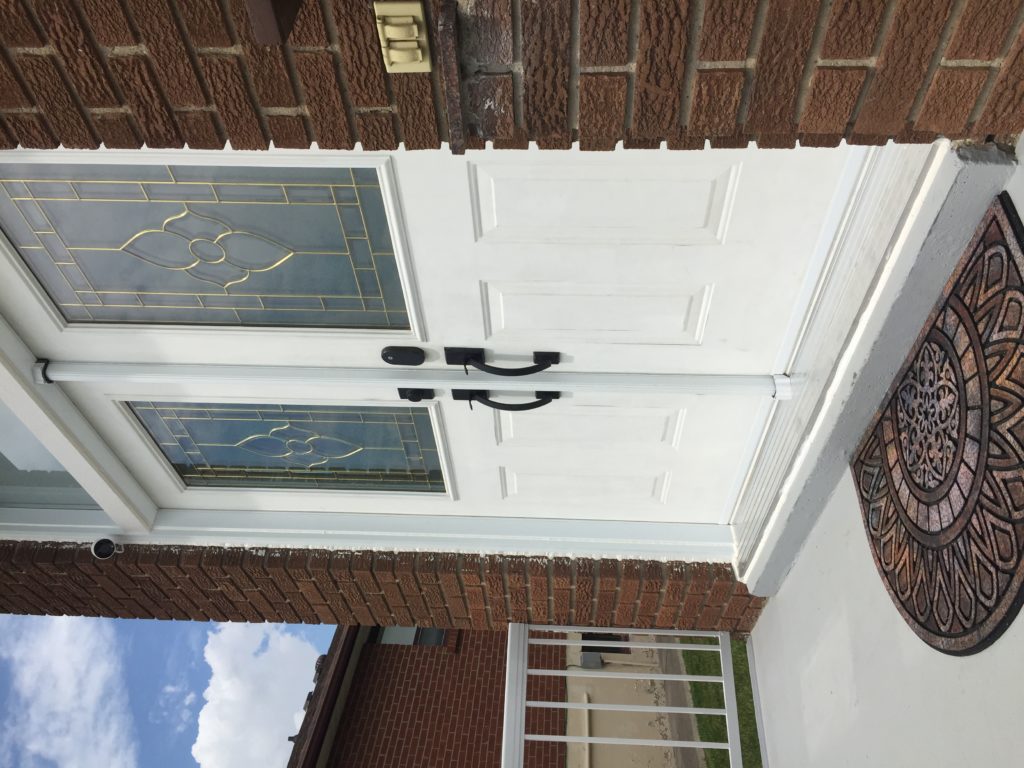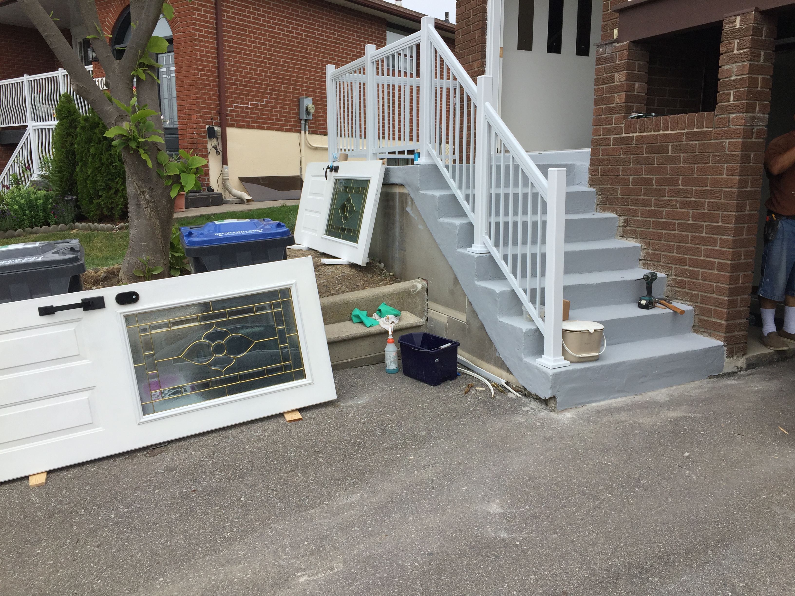 in 2018-09, I started to think about what should I do with the front door, it was getting old, ugly. But weather as getting worse. Finally on 2019-06, I started to looking solutions, either install a new one, or fix it up. To the end, I decided to change the glass windows of the top, also replace the brick molding. But after those needed parts in place, we realized the door frame and footer must be replaced as well (due to the conditions deteriorating very badly). To the end, the front door was professionally installed, painted, total fix-up, even my contractor friend also had no extensive experiences on front door installation, and cost is much higher than what I expected.